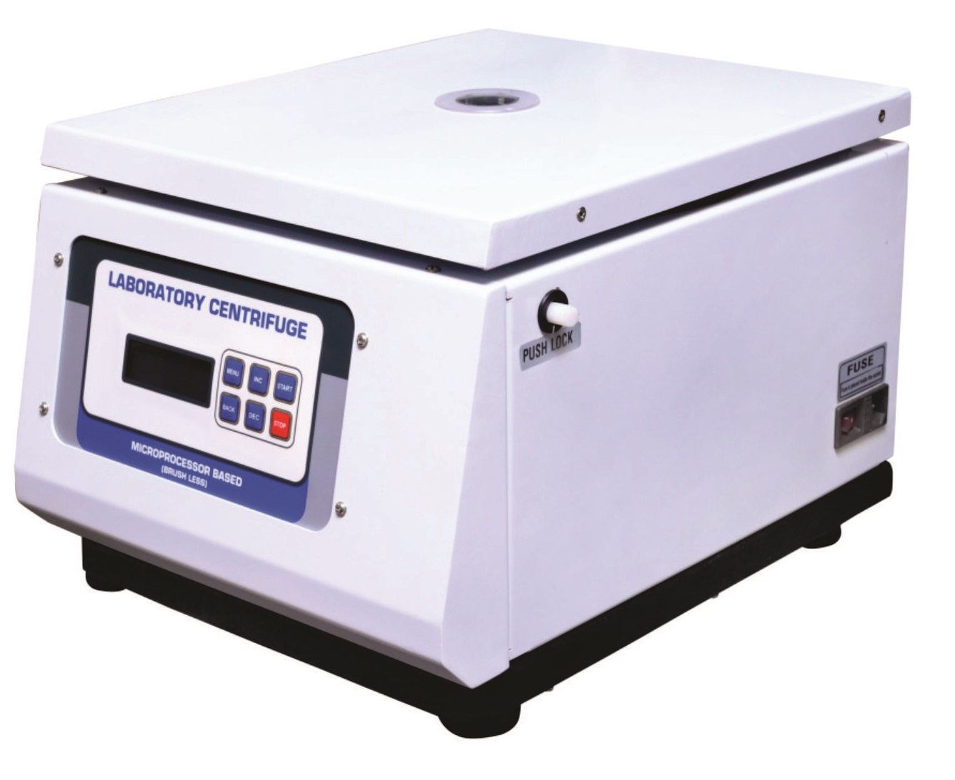 - Microprocessor based, 4 lines 20 characters LCD display of set & run time, set & run RPM.